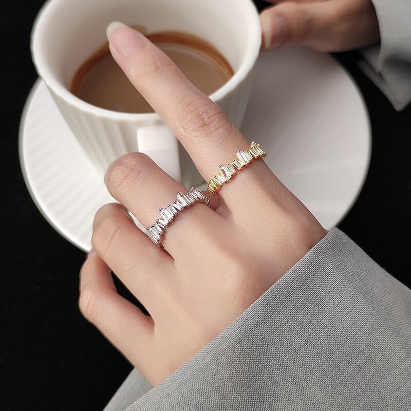 Bague fantaisie femme trapézoïdale de Style Mori, diamant intégré, Super Flash, Unique, à la mode, Niche irrégulière, indice F