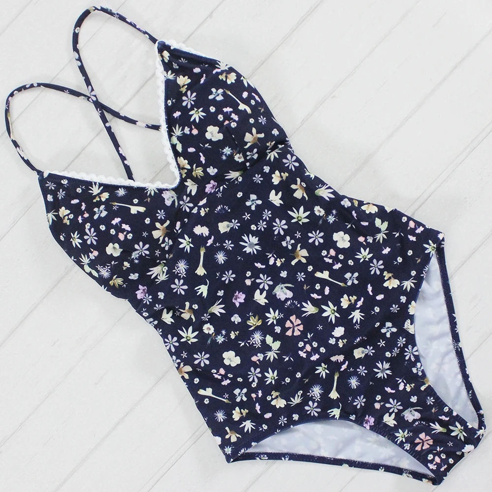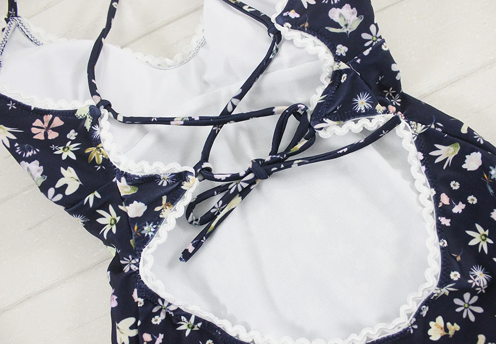 2017 nouvelle impression pansement une pièce maillot de bain ensembles Sexy maillots de bain à fleurs femmes dentelle body Monokini été maillot de bain